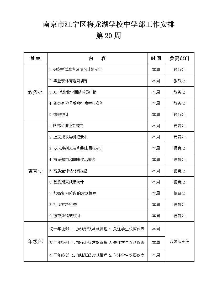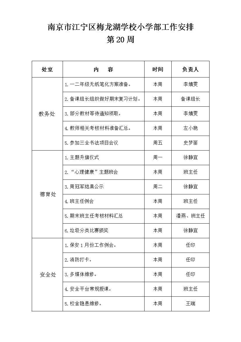 2025-2026学年度第一学期工作安排(第20周)