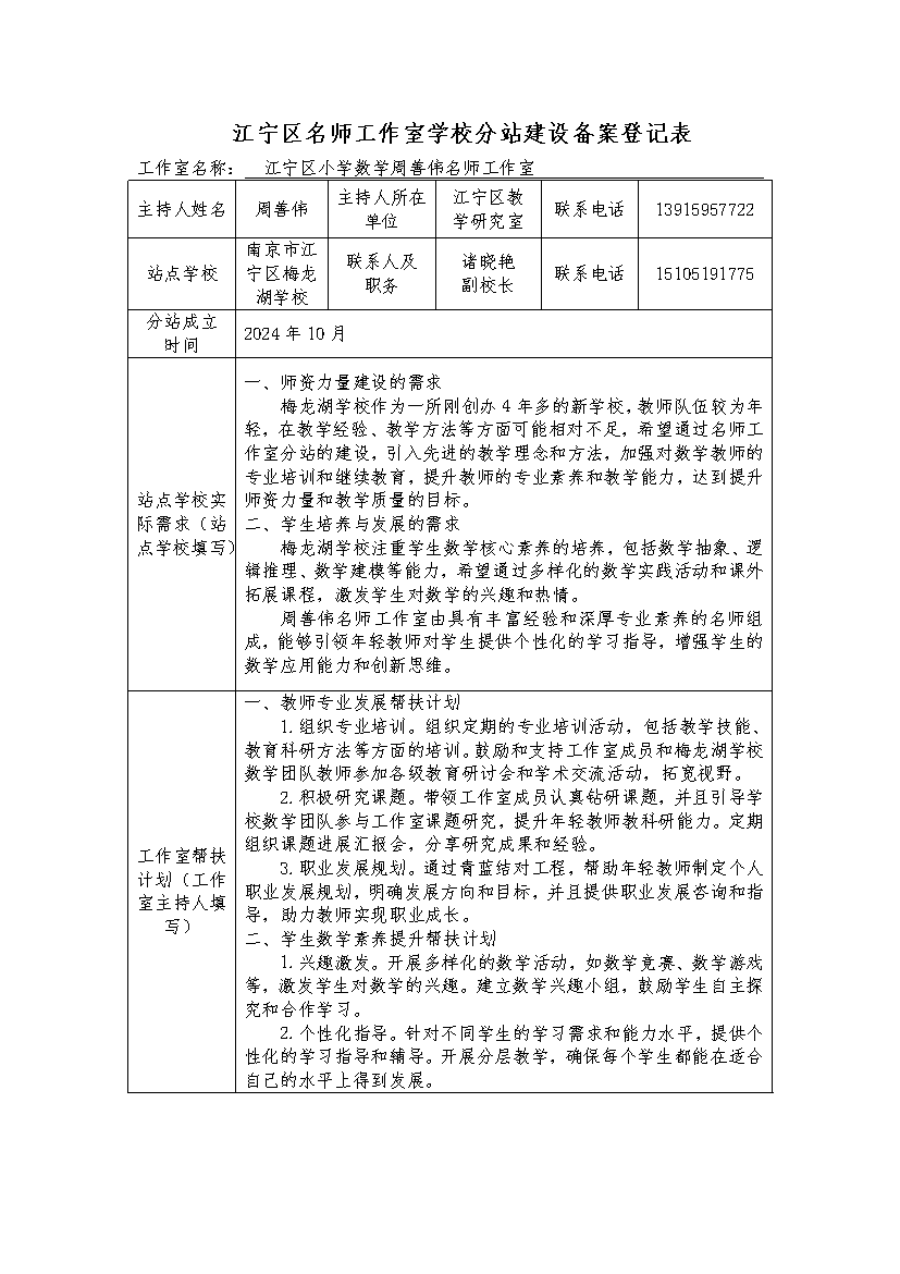 江宁区小学数学周善伟名师工作室梅龙湖学校分站