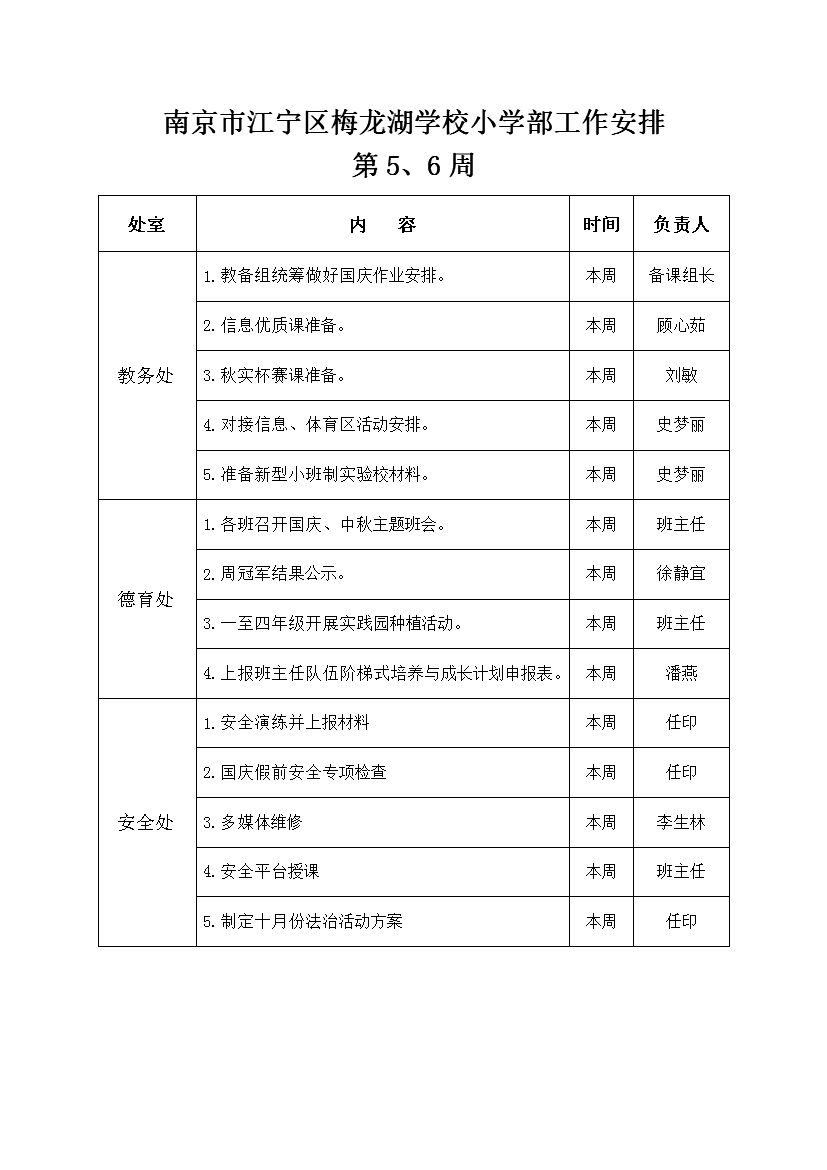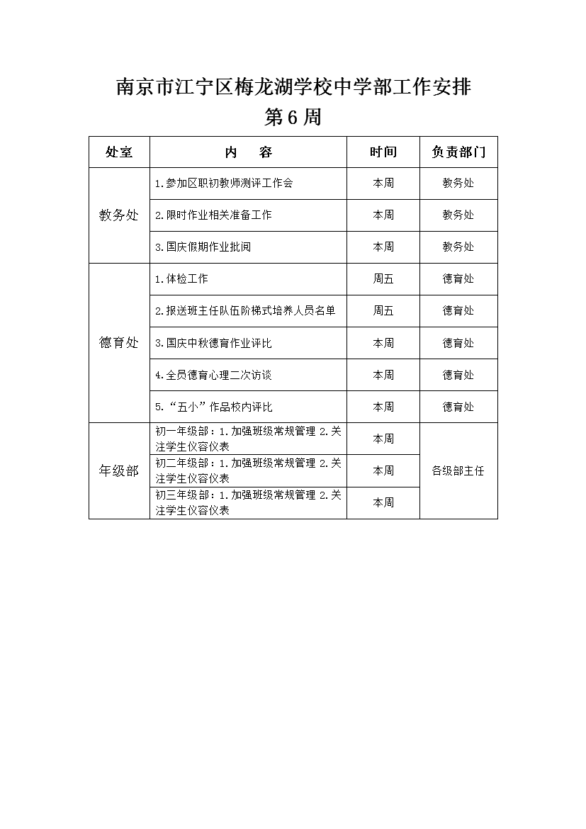 2025-2026学年度第一学期工作安排(第6周)