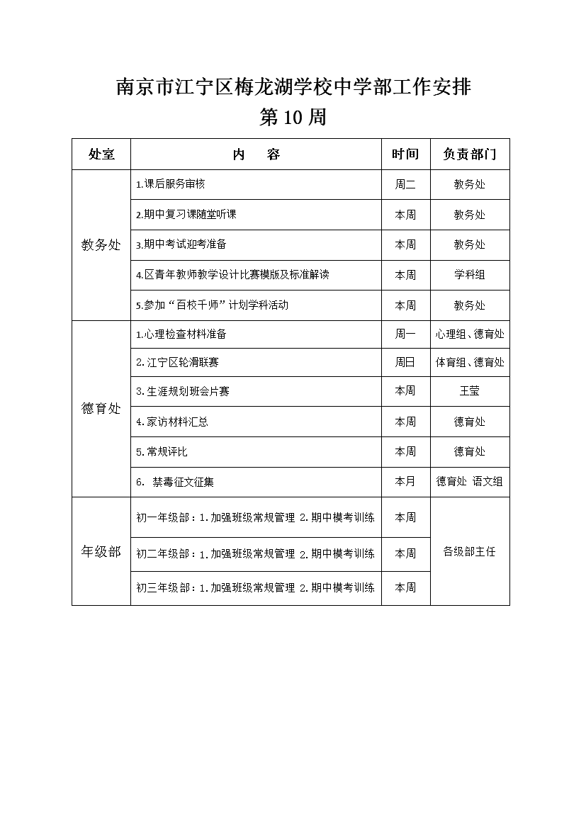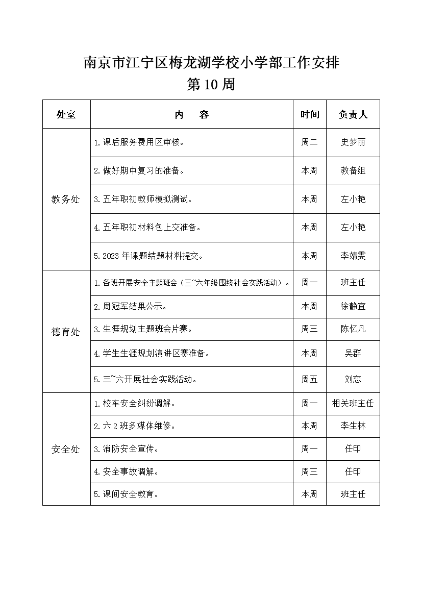 2025-2026学年度第一学期工作安排(第10周)